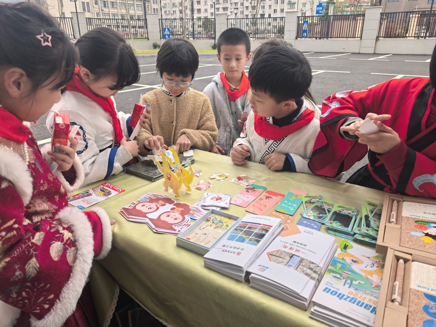 本次“悦读快车”十周年记念活动还建设了“茶韵东方”茶艺、“纸墨书香”桐庐本性非遗剪纸面孔展示、“富春词韵”古筝诗词饰演以及“阅见科学”科普实验的体验,并展出了“十周年童心彩画展”、《国之脊梁》图片展等。浙江少年儿童出书社为富春江小学学生带来《国之矿藏》讲座,作者毛晓青以“古代青铜器之王”“面具之王”等“顶流”国宝为踪影,串联起从商周青铜到明清画卷的端淑线索。丰富多元的互动践诺,深入了阅读内涵,让孩子们在书香、艺术与科学的斡旋中探索无穷可能。