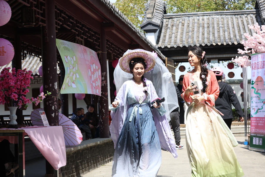 市民一稔汉服参加桃花节。李茂君 摄