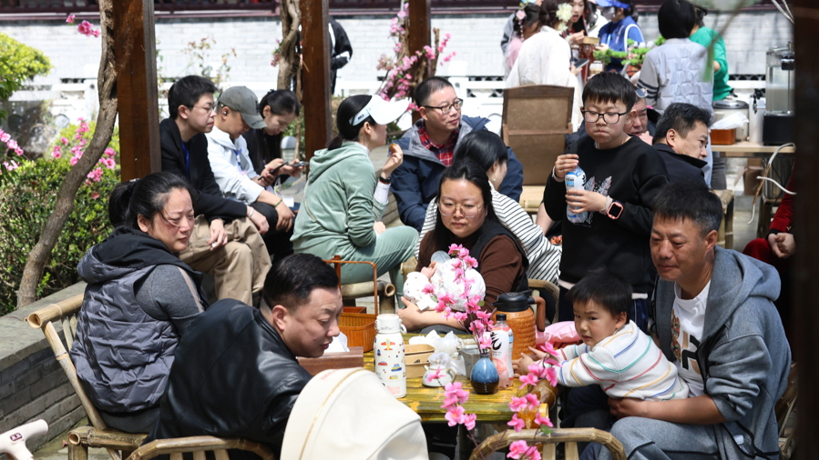 本年的桃花节,这支队列就集体挪动了。在川沙新镇连民村里一处古色古香的老宅院,演员们当场上演了一处李白作诗的“古偶剧”;随地可见的NPC(非玩家变装)须臾拉着你投壶,须臾拉着你射箭,对出飞花令还不错领取桃花雪柜贴。玩儿累了,水榭楼台处,点心、卤味、茶水也备皆了。