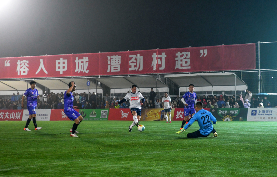4月12日傍晚,金山区漕泾水窠景区悦野足球乐土的灯光循序亮起,看台上的大叫声、饱读点声与草坪上的哨音交汇成一派,“村超”世界赛上海金山赛区“榕入申城 漕劲村超”足球赛在这里拉开帷幕。这个属于草根、属于乡土、也属于科技与文旅的乡村足球之夜,点火了沪郊的春末情感。