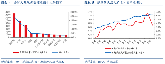 2、天然气探明储量居全球第二,产量占比排第三,但直接出口占比小。伊朗的天然气探明储量约1183万亿立方英尺,全球占比约17.1%,位列第二位,仅次于俄罗斯。2024年,伊朗天然气产量2629亿立方米,占全球产量比重约6.4%,仅次于美国和俄罗斯。因伊朗缺乏LNG出口设施,主要依赖管道出口,2024年出口量不足产量的5%,占全球出口量仅约0.7%。