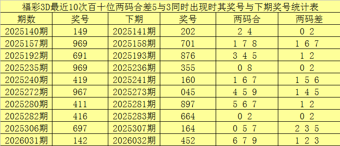 从以上统计不错看出,百十位两码合差5与3同期出现之后其下期两码合差发达最热的4个分手为:0125,本期百十位两码合差不错参考这四码中的数据。