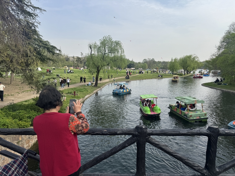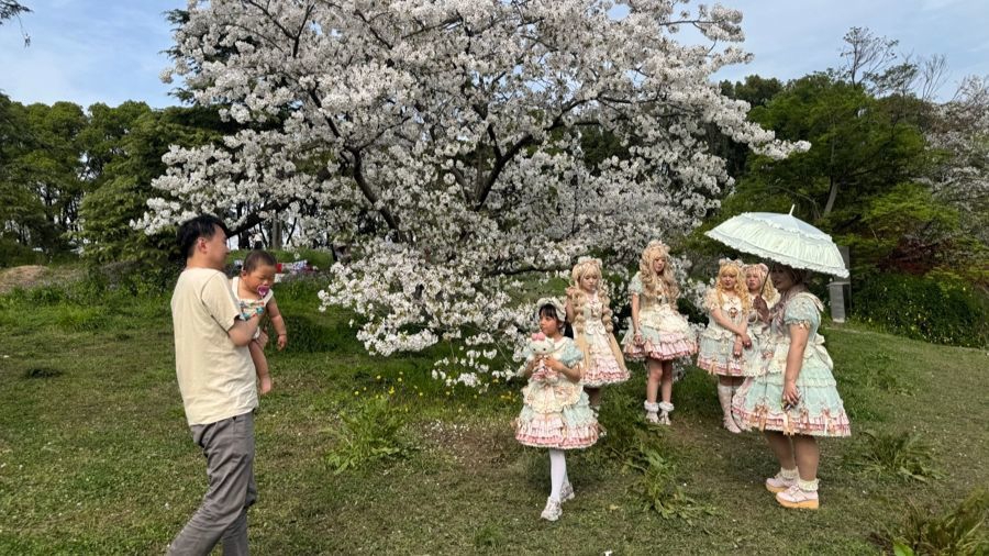 4月6日的共青丛林公园,亲子游客相遇二次元东说念主群。 任翀 摄