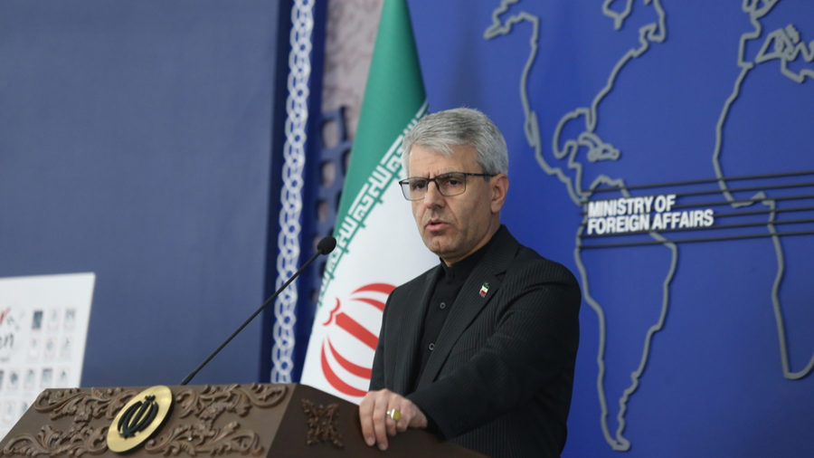 3月30日,在伊朗王人门德黑兰,伊朗社交部发言东谈主巴加埃出席新闻发布会。\n 新华社发