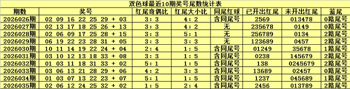 双色球第2026035期奖号为:02 06 12 24 25 32 + 02,红球余数为:2456,包含同尾红球:02 12 32。