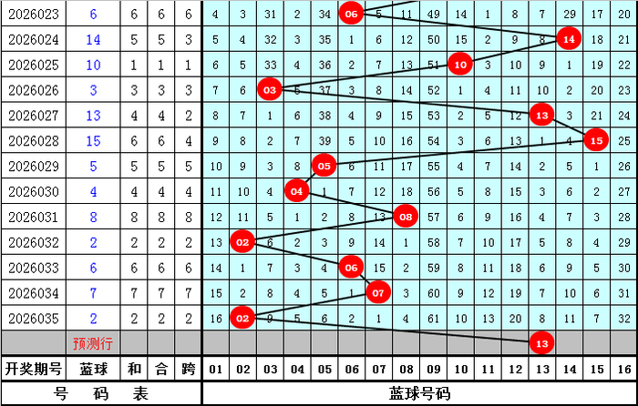 蓝球推选:最近10期蓝球开出余数:2、3、5出现2次,4、6、7、8出现1次,0、1、9出现0次,本期要点存眷奇数蓝球出现,参考蓝球号码13。