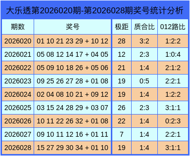上期记忆:大乐透第2026028期记忆:前区15、27、29、30、34 + 后区01、10。
